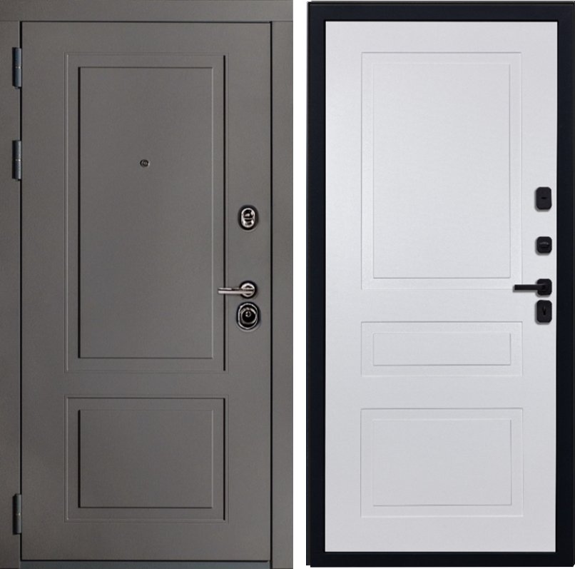 Металл Порошково-полимерное покрытие, цвет Шагрень серая RAL 7011 Отделка снаружи Лист стали + ламинированная МДФ панель 10мм , цвет Ясень графит
