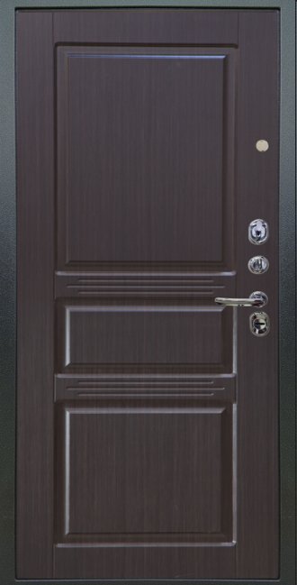 TOR XL черная: Врезная броненакладка, сувальдные накладки, ручка, ночная задвижка, цилиндр ключ-вертушка (производитель не регламентируется), глазок, эксцентрик.