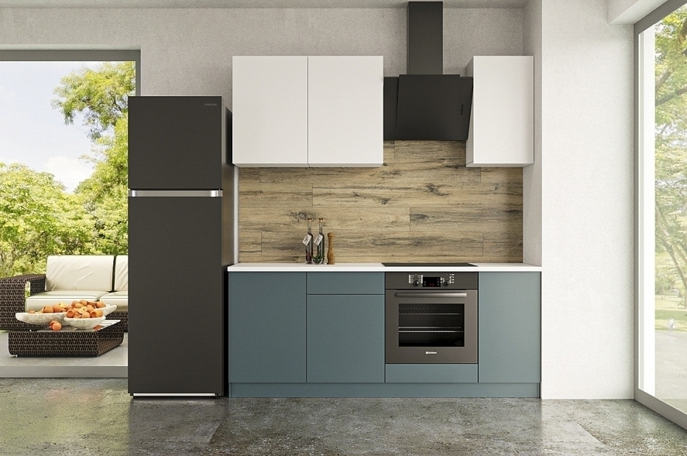 Ручки, столешница, стеновая панель, мойка, смеситель и бытовая техника продаются отдельно.